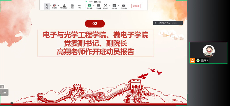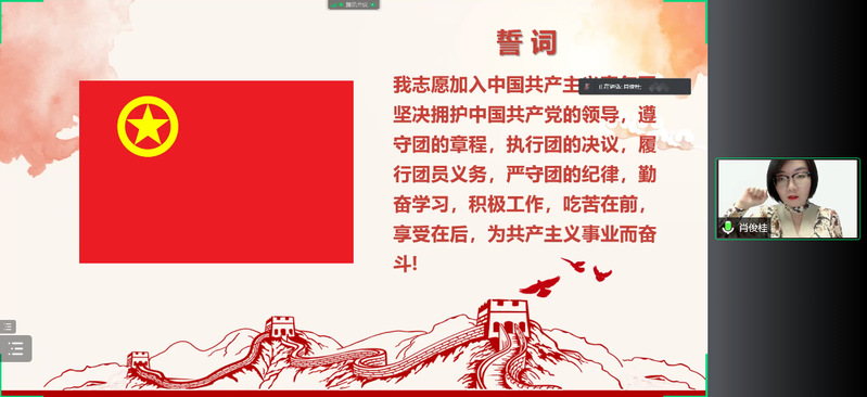 为贯彻落实《“青年马克思主义者培养工程”实施纲要》,引导青年学生成长为中国特色社会主义事业的合格建设者和可靠接班人。4月12日晚,304永利集团官网入口、柔性电子(未来技术)学院第118、119期菁英人才学校举行第一次授课,本次授课主题为“开班仪式与入党知识讲解”。根据疫情防控要求,本次开班仪式与入党知识讲解课程线上举行,由学院党委副书记、副院长高翔老师担任主讲人,学院分团委书记肖俊桂老师主持,各年级辅导员老师和菁英人才班全体学员参与。