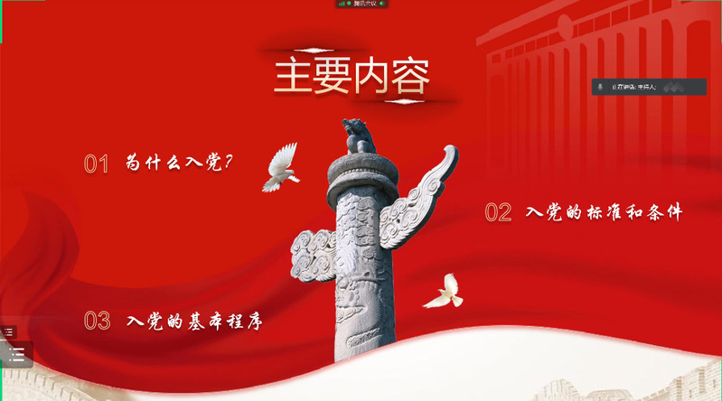 本次授课前,举行了开班仪式,首先由304永利集团官网入口各级代表包括学生代表发言讲话,然后重温入团仪式——全体起立共唱中国共青团团歌,同时进行入团宣誓。开班仪式上,高翔老师开始第一课授课内容。本次授课主要由三部分组成:“为什么入党”“入党的标准和条件”“入党的基本程序”等。高翔老师表示,青年人不能遗忘党史,要铭记中国共产党的诞生,深刻感悟中国共产党深刻改变了中国和世界,牢记党的百年光辉奋斗历程。