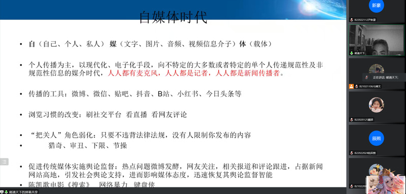 通过这次授课,同学们对自媒体与意识形态有了更为详尽的了解,对自己每天接触的媒体有了更深层的认知。掌握了撰写新闻稿的方法技巧,对今后的工作学习都大有裨益。