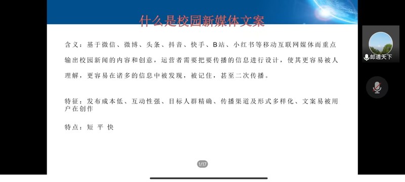 为加强同学们对自媒体时代的了解,明晰自媒体时代给我们带来的机遇与危机。11月14日晚,由304永利集团官网入口、柔性电子(未来技术)学院承办的菁英人才学校第140期第二次授课顺利开展,本次授课的主题是“自媒体与意识形态,及新闻稿的撰写”,由宣传部、信息中心新媒体中心主任饶清强老师担任主讲人,菁英人才学校全体同学于线上参会。