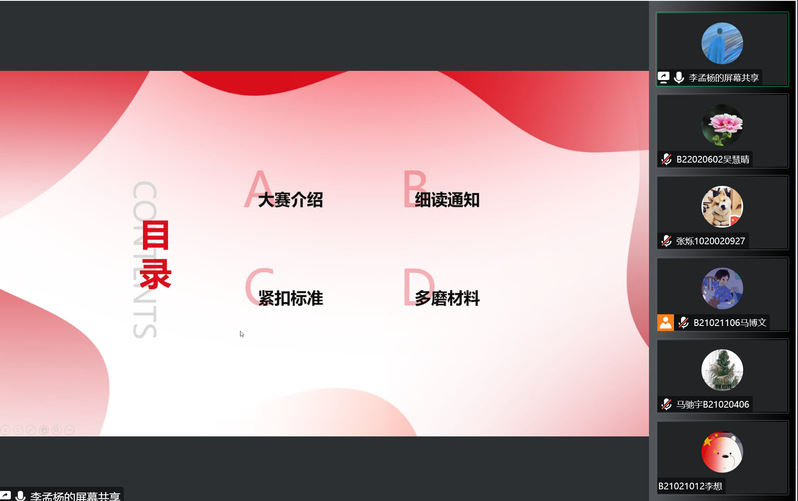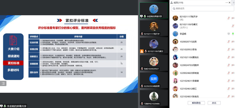 除此之外,李老师还指出,题目、计划书、队友、经历对分数具有决定性作用。他希望每位参赛同学能各行所长,在团队中明确分工合作,高效率高质量完成作品。更希望同学们能够积极参与到这两项竞赛中去,在创作过程中攻坚克难,以实效创新直击社会痛点。