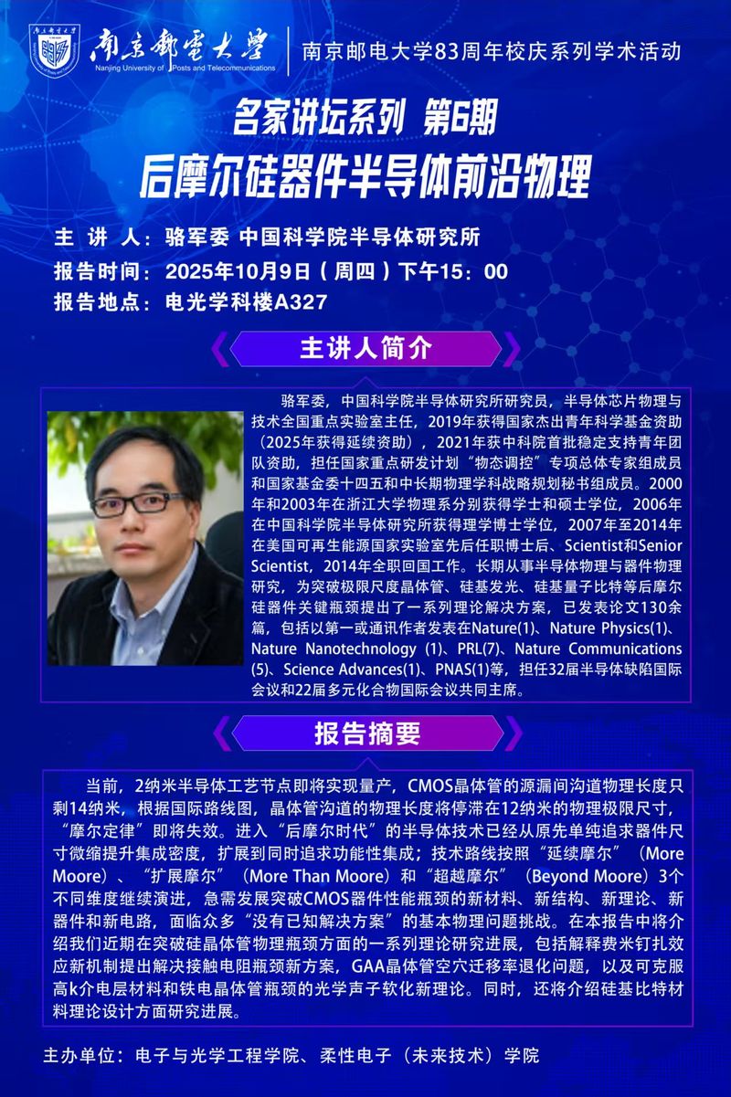 学术报告:后摩尔硅器件半导体前沿物理