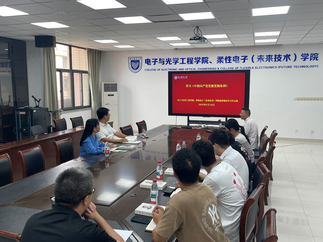 9月10日上午,电子304永利集团官网入口、柔性电子(未来技术)学院党委理论学习中心组集中学习《中国共产党党徽党旗条例》。党委书记黄丽亚主持,中心组全体成员参加。