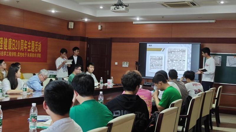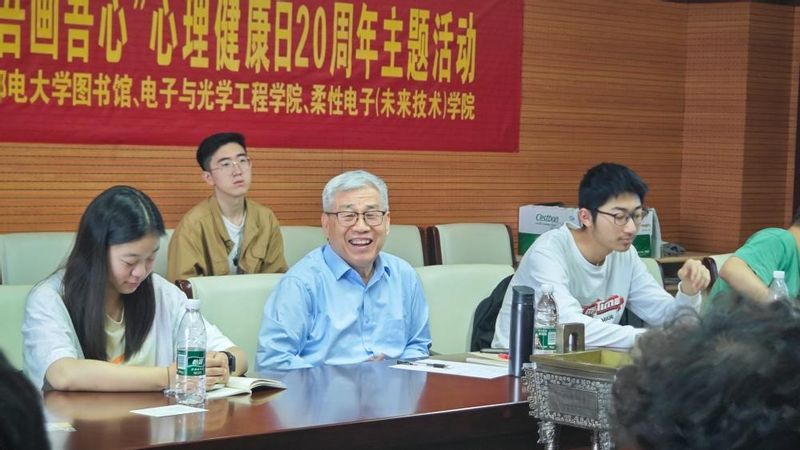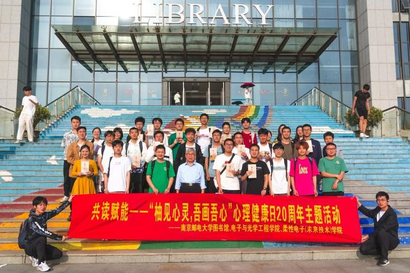 在5月25日全国大学生心理健康日来临之际,为落实立德树人根本任务,促进大学生身心健康和谐发展,提升大学生的阅读素养,丰富大学生的课余生活,5月22日下午,图书馆和304永利集团官网入口、柔性电子(未来技术)学院联合开展共读赋能——“柚见心灵,吾画吾心”心理健康日20周年主题活动。电光柔院B230200创新班全体学生,电光柔院、图书馆、读书协会师生代表共三十余人参加了本次活动,活动特别邀请关工委李雷教授现场指导。
