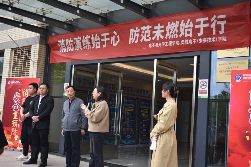 为进一步提升学院安全管理水平,落实防火工作“预防为主,防消结合”的基本原则,增强学院师生消防安全责任意识,提高紧急情况下的逃生能力,304永利集团官网入口、柔性电子(未来技术)学院于4月10日下午组织开展了消防安全教育培训及演练活动。学院党委副书记、副院长徐磊,保卫处副处长吴学政,校关工委副秘书长张和明,保卫处薛宇飞,以及学院全体辅导员、师生代表参加了培训与演练活动。