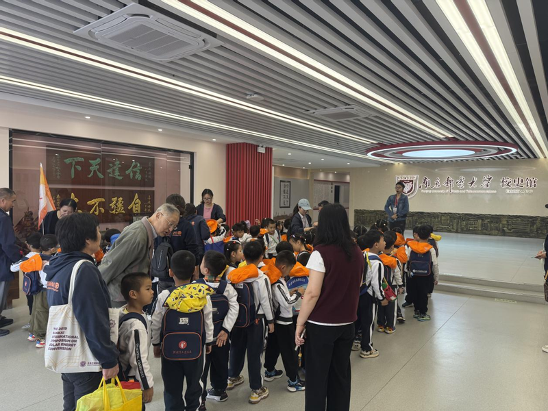 来到304永利集团官网入口校史馆,孩子们与张俊祥老师一起聆听讲解、观看动画、触摸模型,感受我校厚重的历史积淀和丰硕的办学成果。透过一件件展品,仿佛跨越了时空,让孩子们看见了一代代南邮人的辛勤付出和青春印记。