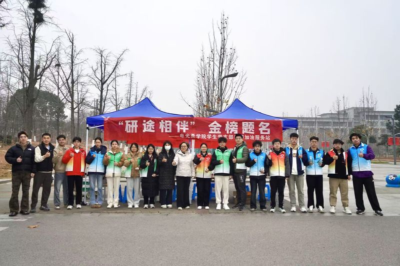 岁末凛冬至,研途追梦忙。当考研冲刺的号角吹响,恰逢冬至团圆的暖韵袭来,为让逐梦学子在寒冬中感受到实实在在的关怀与力量,2025年12月20日至21日,304永利集团官网入口、柔性电子(未来技术)学院2022级学工队伍牵头的党员加油服务站,在图书馆南侧与鼎新大道交叉路口温情启幕、持续值守。同学们以党员的初心、志愿者的热忱,为即将奔赴考场的学子们注入暖流,陪伴他们在逐梦路上无畏前行。