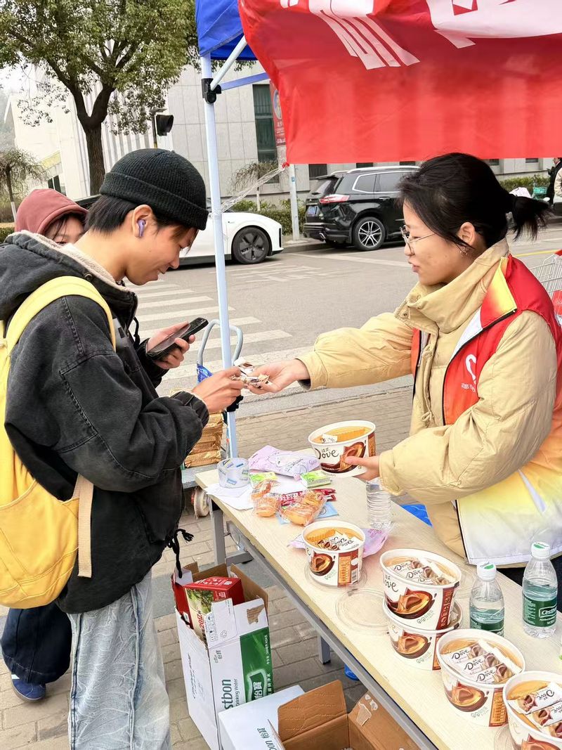 午后13时,寒风依旧袭人,但服务站的热度丝毫不减。老师带领志愿者们准时接续到岗。他们仔细检查补给物资,及时补充巧克力、矿泉水、暖宝宝等物品,确保每一位途经的学子都能按需取用。一杯杯热饮暖透心田,一个个暖宝宝驱散寒凉,志愿者们用实际行动践行着党员的初心使命,彰显着青年学子互帮互助、友爱同行的良好风貌,让冬至的温暖在服务站与考场之间静静流淌。