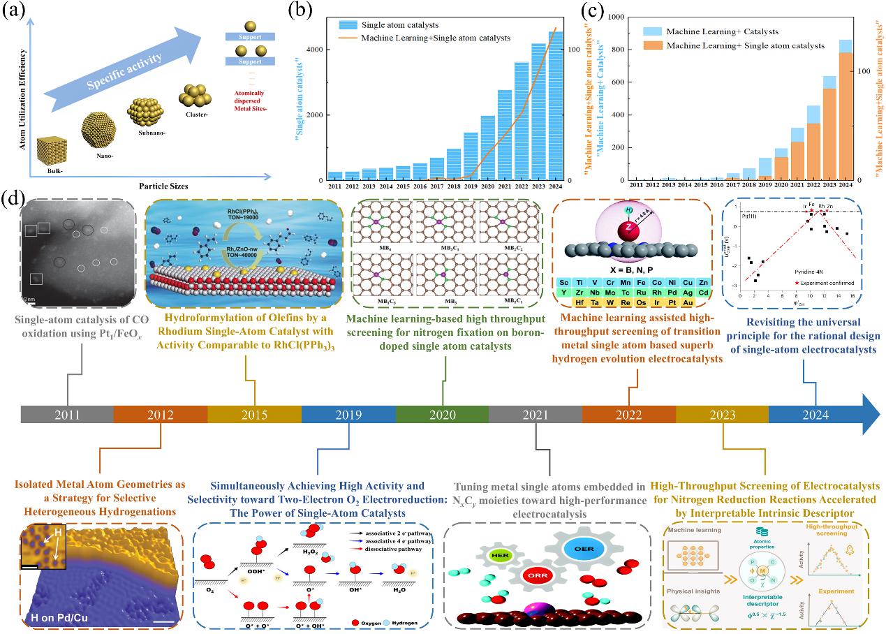 图1. 机器学习单原子催化剂的发展进程。