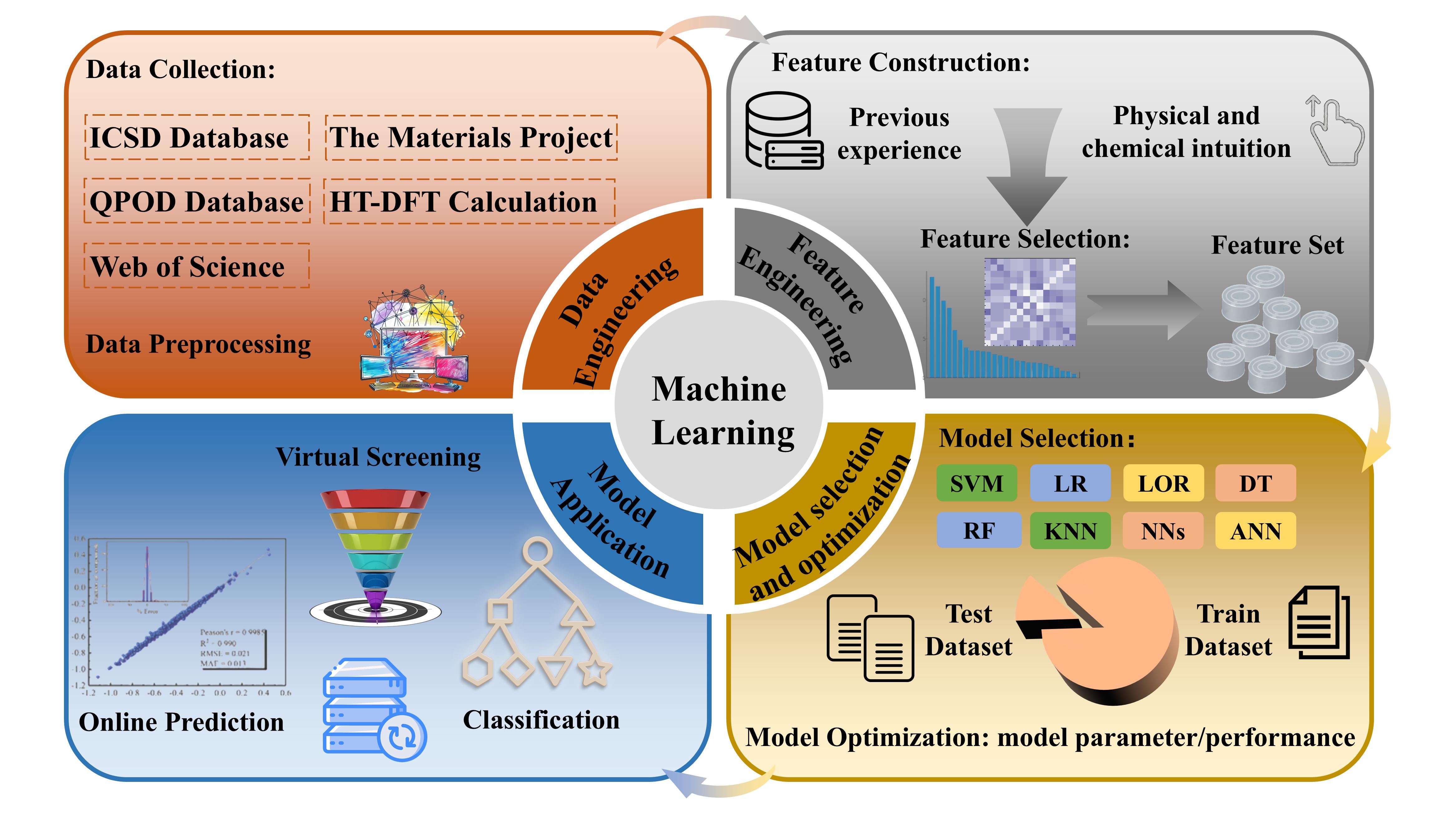 新材料开发的传统方法主要依赖于试错策略,这不仅耗时且昂贵,而且在很大程度上取决于实验者的物理化学直觉。此外,随着材料的多样性和复杂性的增长,第一性原理计算变得越来越耗时和昂贵,制约了新材料的研发进程。机器学习,是一种自动数据分析模型,能够根据大量已知数据预测目标的属性。近年来,机器学习在材料科学中得到了广泛的应用,特别是在加速材料发现和材料应用方面。