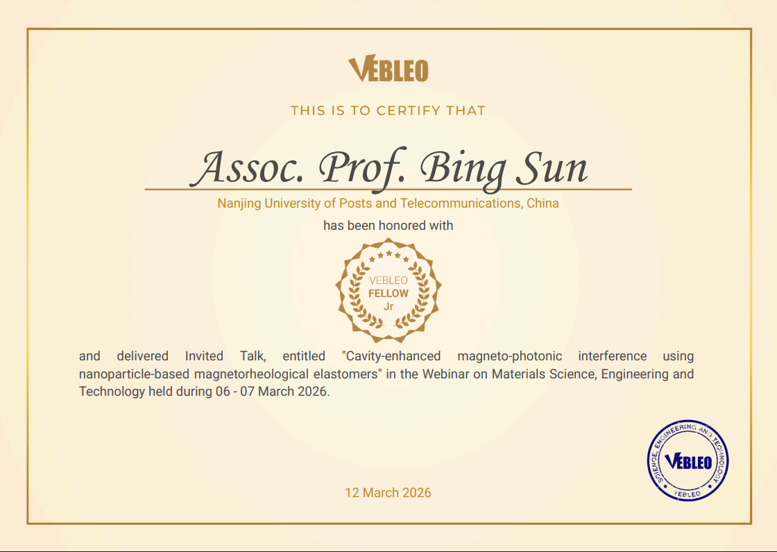 此次获得Vebleo Fellow荣誉称号,体现了国际学术界对孙兵副教授研究工作的认可,也进一步提升了学院在微纳光子与光纤传感领域的国际影响力。